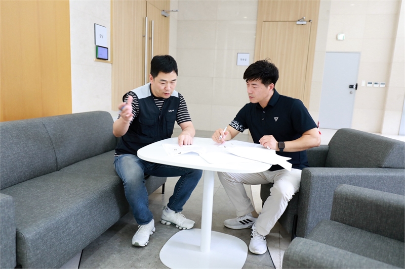 지난 8월 18일(월요일) 제51회 전국품질혁신경진대회 출전을 앞두고 명장들은 분임조와 함께 발표 리허설을 진행했다. 이 과정에서 명장들은 발표자세, 질의응답 대응, 내용의 완성도까지 세심하게 지도하며, 후배들이 최고 성과를 낼 수 있도록 아낌없는 조언과 격려를 건넸다. 단순한 기술적 지도에 그치지 않고, 후배들의 열정을 존중하고 동행하는 모습은 명장으로서의 진정한 품격을 보여주었다.