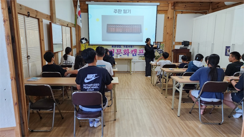 둘째 날은 아침 8시에 기상하여 ▷용암사지 국가문화유산 견학 및 산책 ▷의병밥상 아침식사 ▷ 권도현 강사가 진행하는 전통놀이 활쏘기와 투호놀이 ▷정 교장이 진행하는 명심보감 교육 ▷김은지강사가 진행하는 주판체험 ▷기념촬영 ▷선비밥상 점심식사의 순으로 진행했다.