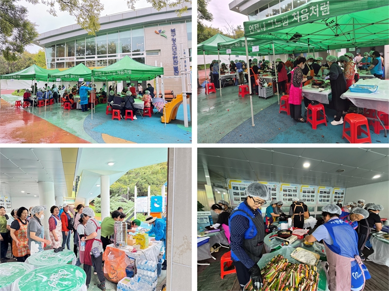 북구종합자원봉사센터(이사장 송윤순)는 9월 25일(목) 가을을 재촉하는 비가 내리는 오전 8시부터 오후 1시까지 센터 앞 문화근린공원 일대에서 추석맞이 이웃 돌봄 나눔 사업 ‘해피 추(秋)게더, 온기 가득 한 상 나눔’ 행사를 진행했다.