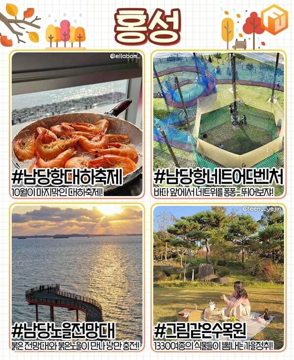 ✅ 남당항 대하축제 ✅ 남당항네트어드벤처 ✅ 남당노을전망대 ✅ 그림같은 수목원