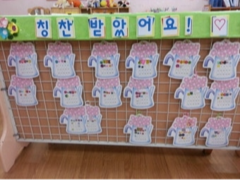 서로의 칭찬스티커를 보며 칭찬받기 위해 노력하는 아이들
