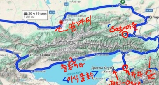 이식쿨 호수 동남쪽에, 제티오구스 협곡(카라콜 부근에)