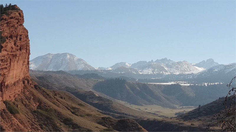 협곡 양쪽으로는 만년설로 덮인 텐샨(Tian Shan) 산맥이 병풍처럼 둘러싸여, 황소바위의 붉은 색과 텐샨이 녹여내는 하얀 빛의 대비가 자연미의 극치가 아니겠는가!@