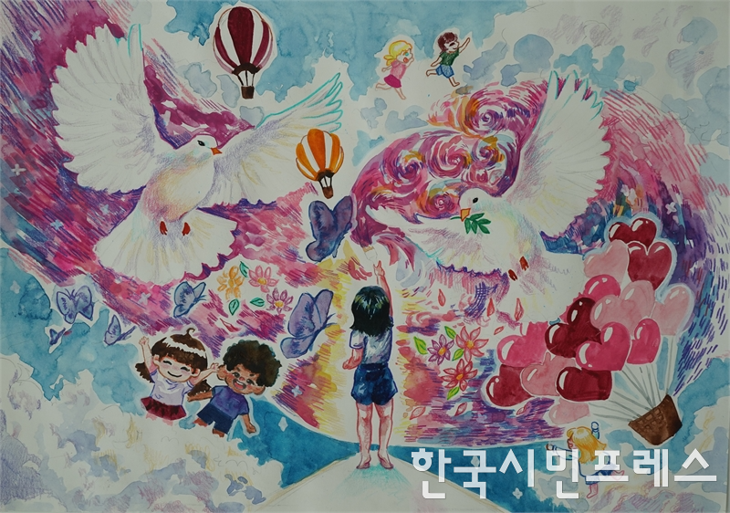 특히 올해 한국미술협회 특별상을 받은 노선하(고등부) 학생의 작품도 전시됐다. 노양은 "제가 할 수 있는 평화를 위한 일은 제가 가장 좋아하는 그림이라고 생각했다"며 "제 그림을 통해 평화를 알리고, 그 마음이 한 걸음이라도 더 가까워지길 바라는 마음으로 작품을 완성했다"고 소감을 밝혔다.