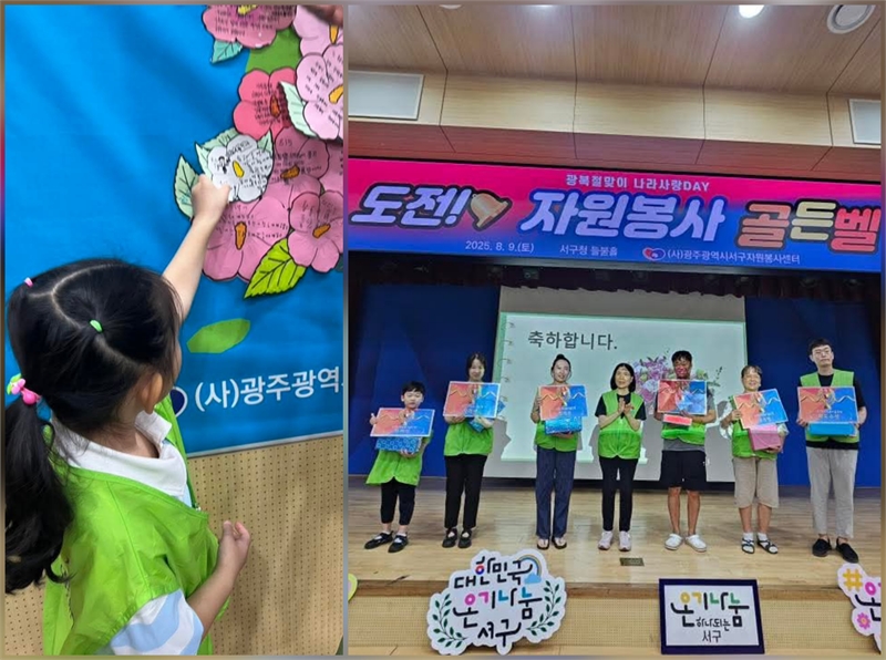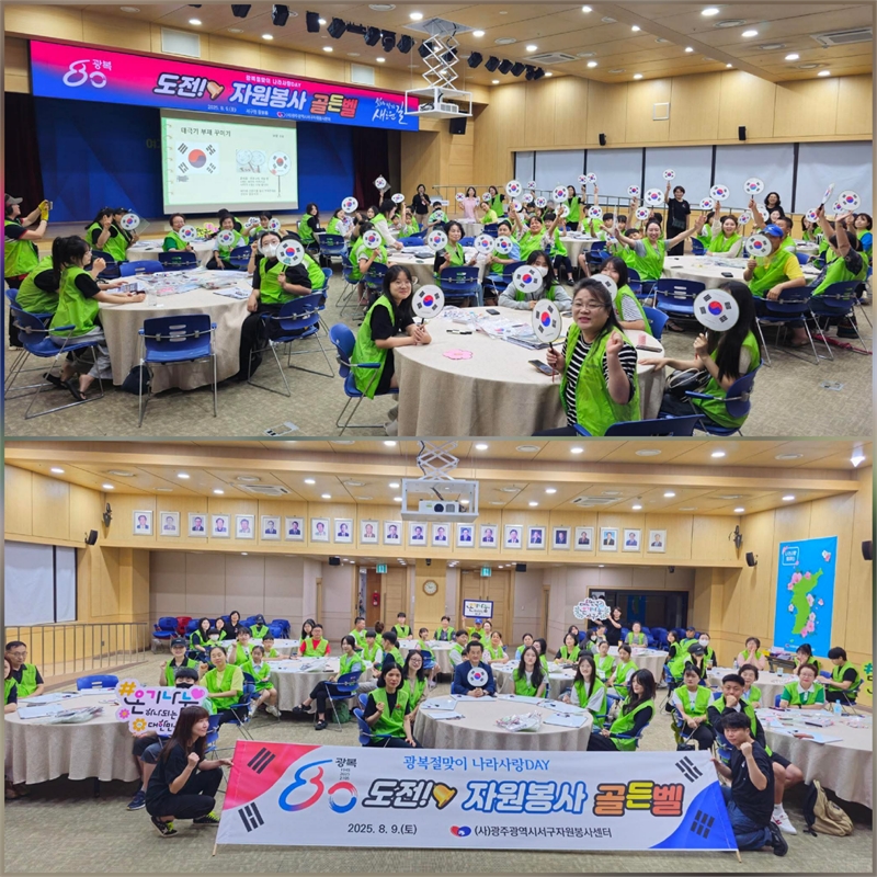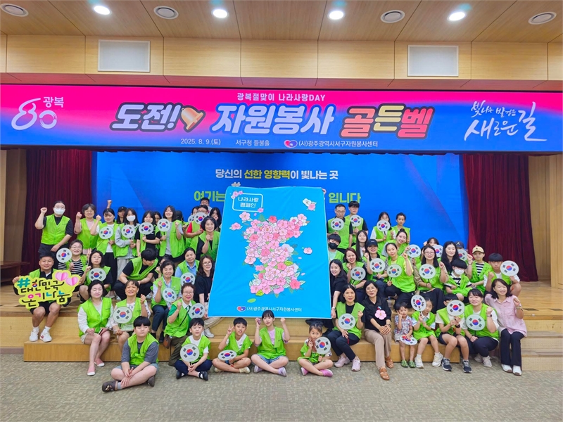 【광주광역시=시민프레스】광주광역시 서구자원봉사센터(이사장 김승휘)는 광복 80주년을 맞아 나라 사랑의 의미를 되새기는 특별한 행사가 광주광역시 서구에서 열렸다. 지난 8월 9일, 서구청 2층 들불홀에서 아동·청소년부터 성인까지 70여 명의 자원봉사자가 한자리에 모여 '도전! 자원봉사 골든벨' 행사를 성황리에 마쳤다. 이번 행사는 나라 사랑의 의미를 배우고, 자원봉사의 가치를 이해하는 소중한 시간이었다. 신민정 강사의 진행으로 광복절과 자원봉사에 대한 퀴즈를 풀며 참가자들은 웃음꽃을 피웠다. 열띤 경쟁 끝에 6명의 수상자가 선정되어 박수갈채를 받았다.