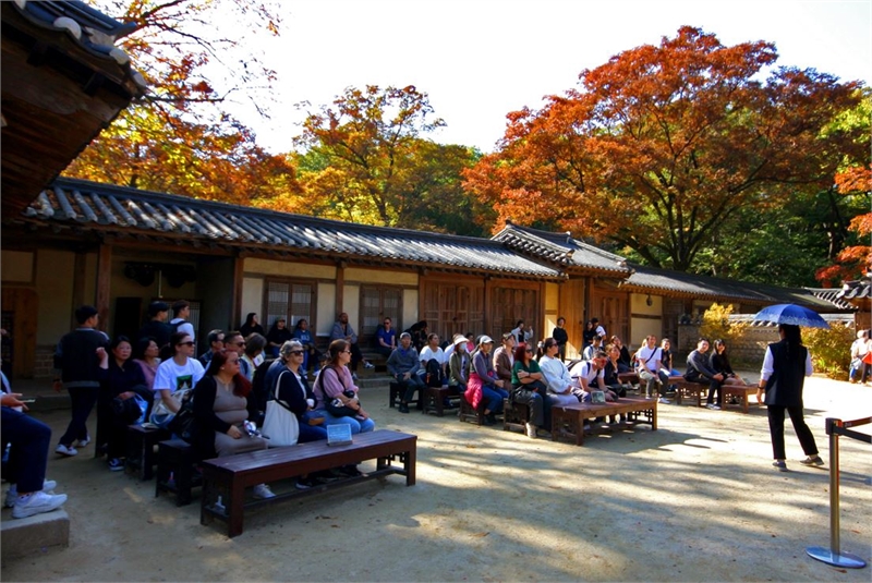 서울 정착 및 유학에 초석이 되어온 우리 문화의 전통미와 고전적 아름다움에 대해 설명을 듣고 있는 외국인 단체