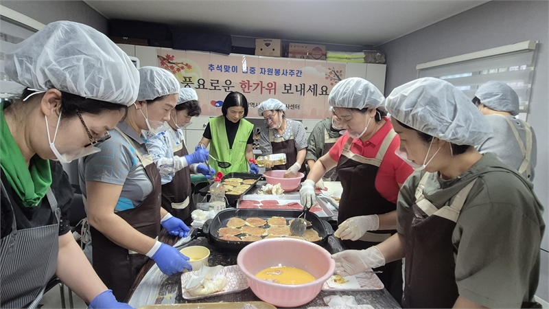 자원봉사자들은 전 3종, 송편, 과일, 한과 등이 담긴 명절 꾸러미를 정성껏 준비하고 포장했다. 특히, 단순히 물품을 포장하는 것을 넘어 직접 전을 부치고 꾸러미 제작과 전달 과정까지 함께 참여하여 나눔의 의미를 더했다. 이렇게 완성된 명절 꾸러미 250세트는 18개 동 자원봉사캠프를 통해 어려운 이웃과 수해 피해 가정에 직접 전달되어 훈훈함을 더했다.
