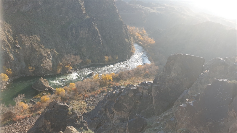 블랙 캐니언 주차장에 차를 댄 후, 전망대로 갔다. 전망대에서 풍경을 보자마자 검은 절벽의 협곡이란 걸 저절로 느끼게 된다. 검은 절벽사이로 흐르는 강물이 샤린강이다.