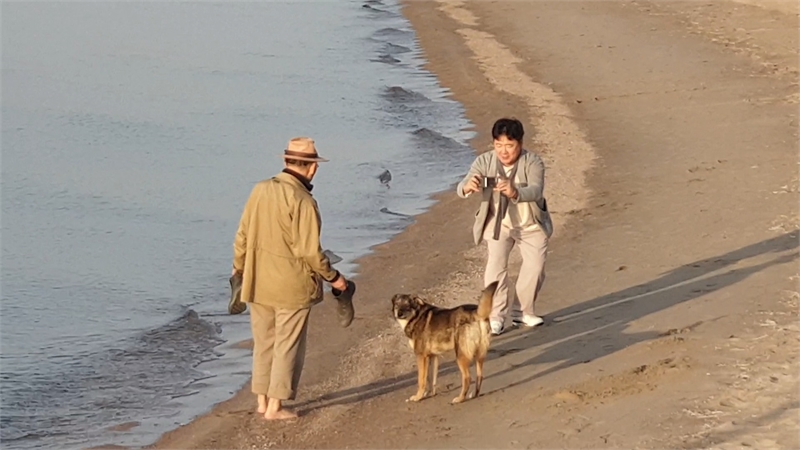 호숫가에는 긴 나무 데크가 호수속으로 안내한다. 뒤로 돌아보니 호숫가를 따라 리조트와 별장들이 즐비하다. 저 너머로 하얀 눈모자를 쓴 텐샨이 웅장함을 뽐내고 있구나!
